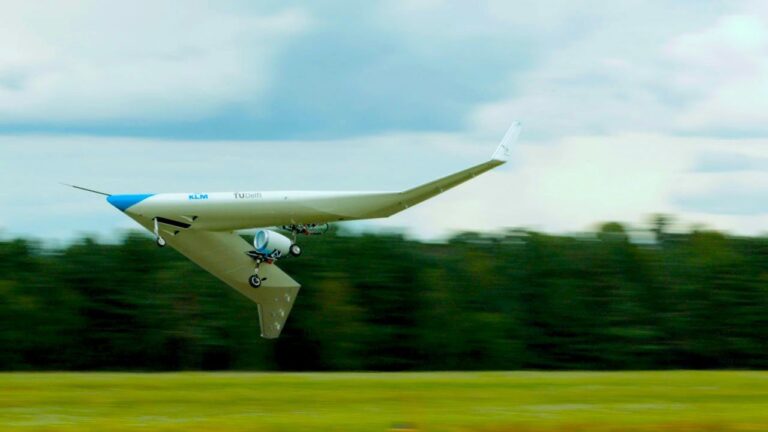 Un modelo a escala del avión del futuro de KLM Royal Dutch Airlines acaba de volar por primera vez en un acontecimiento que marca un hito en la apuesta de la aerolínea holandesa por aviones más eficientes y respetuosos con el medio ambiente. Los ingenieros pudieron ver por primera vez en agosto lo que podría ser un día el nuevo buque insignia de la flota de KLM cuando el demostrador Flying-V, de aspecto futurista, surcó los cielos de Alemania. El vuelo por control remoto fue la culminación de dos años de trabajo de los ingenieros de KLM y de la Universidad Tecnológica de Delft. El Flying-V difiere de los aviones convencionales, ya que el fuselaje y las alas se fusionan para formar un ala voladora gigante. Los nuevos aviones de largo alcance de Airbus y Boeing se centran en la eficiencia mediante el uso de materiales compuestos y motores de bajo consumo, pero los aviones con alas voladoras llevan la eficiencia al siguiente nivel con un nuevo y radical diseño aerodinámico del fuselaje que permite mayores alcances y un mejor rendimiento del combustible.Los investigadores afirman que el diseño reducirá el consumo de combustible en un 20% respecto a los aviones más avanzados de la actualidad, como el Airbus A350 y el Boeing 787 Dreamliner, ambos empleados por Air France-KLM, la empresa matriz de la compañía holandesa y uno de los mayores grupos aéreos de Europa.